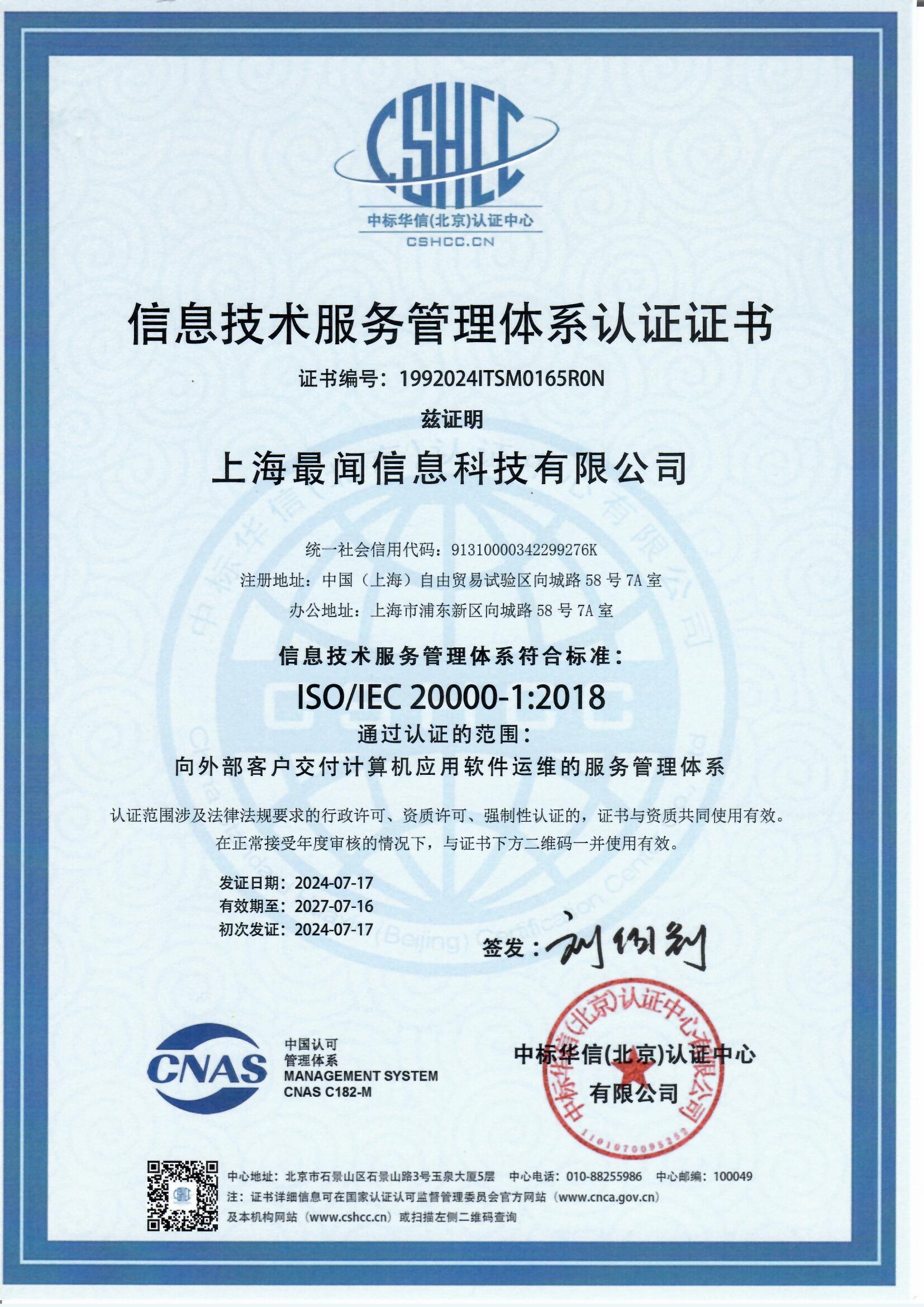 信息技术服务管理体系ISO20000